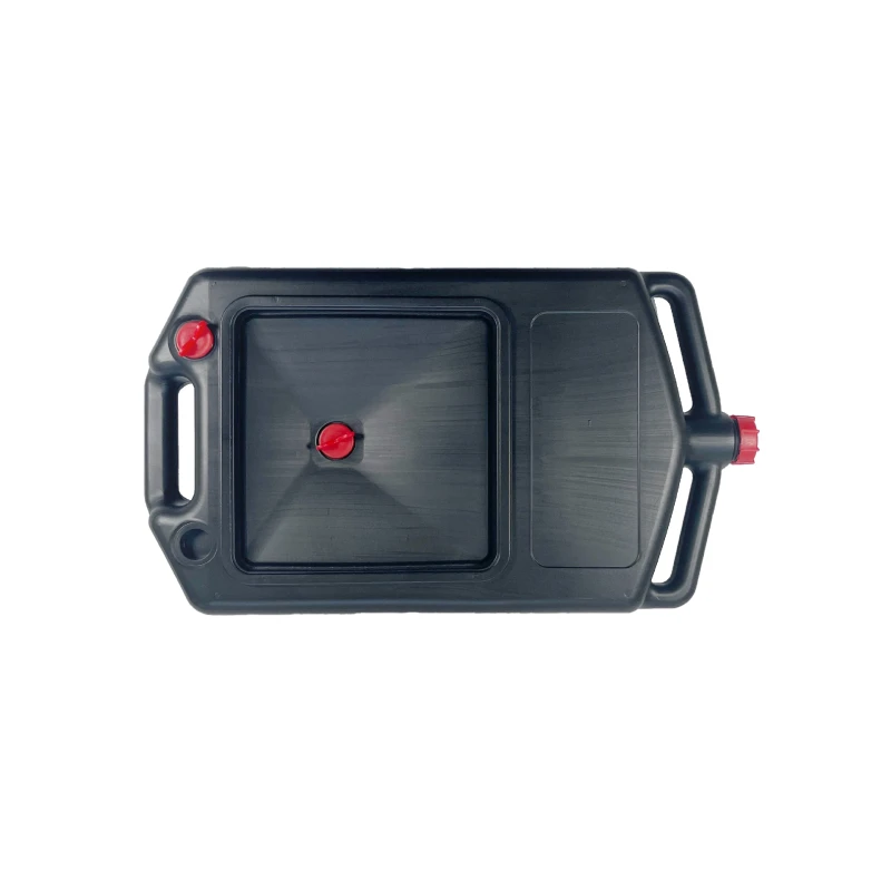 Het heeft een brede opening die zorgt voor een efficiënte afvoer van gebruikte olie, zonder dat extra trechters nodig zijn. De geïntegreerde handgreep maakt transport en gebruik eenvoudig, terwijl de ingebouwde bak eventuele morsingen opvangt en de werkplek schoon houdt.