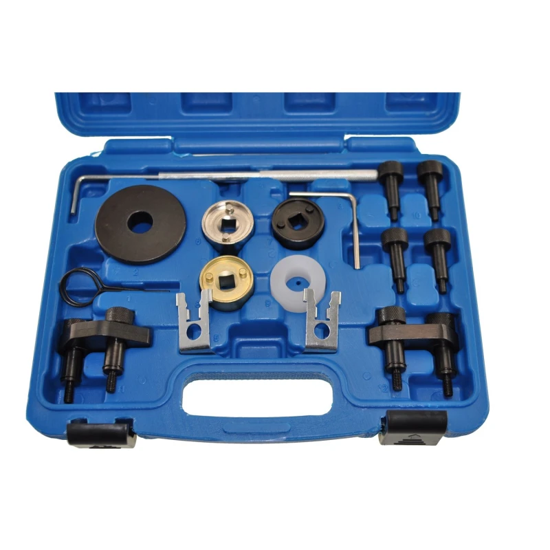 Deze professionele afstelset is ontworpen om de motortiming nauwkeurig af te stellen in voertuigen met EA888-motoren van 1.8L en 2.0L TSI/TFSI, en zorgt voor een correcte positionering van de nokkenas en krukas.