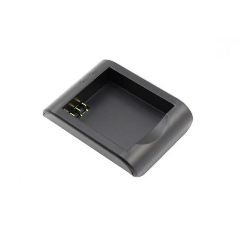 De externe lader maakt het mogelijk een batterij op te laden terwijl u de camera met een andere batterij gebruikt, waardoor de gebruikstijd wordt geoptimaliseerd. De laadsnelheid is vergelijkbaar met laden in de camera, omdat beide methoden afhankelijk zijn van dezelfde USB-spanning en -stroom (5 V, 0,5-1 A). Het belangrijkste voordeel is dat slijtage van de USB-aansluiting van de camera wordt voorkomen.