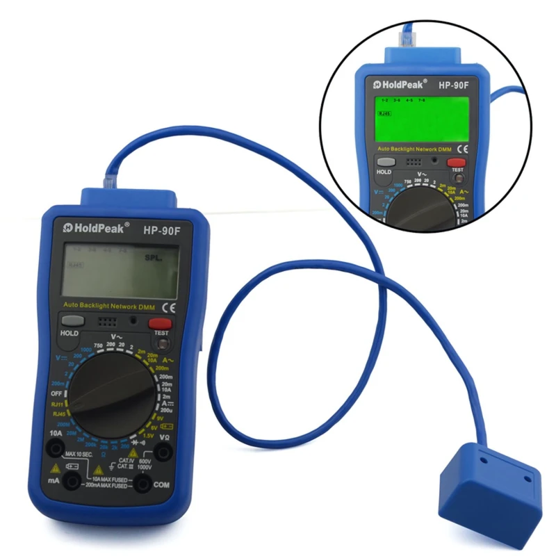 HoldPeak HP-90F digitale multimeter met RJ11- en RJ45-kabeltest