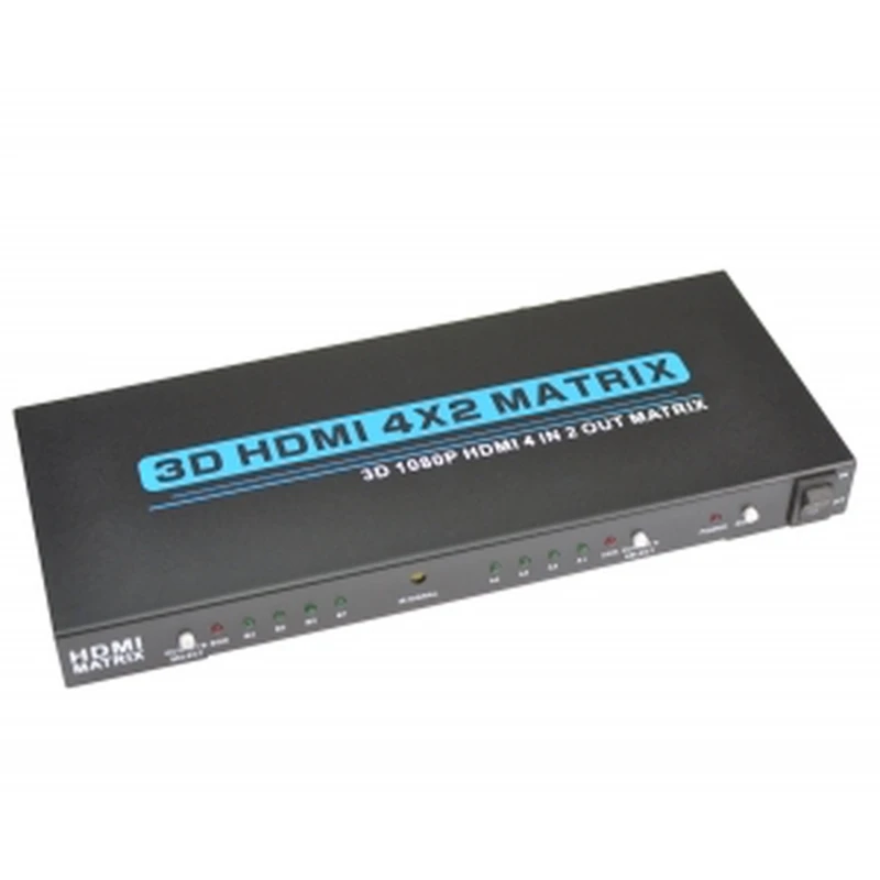 Gewoonlijk heeft de schakelaar afmetingen van ongeveer 220 mm x 71 mm x 25 mm en een gewicht van circa 380 g. De doos bevat meestal: 1 HDMI 4x2-matrix, 1 IR-afstandsbediening, 1 DC 5V - 2A-voedingsadapter en 1 gebruikershandleiding. Dit kan per batch of leverancier verschillen.