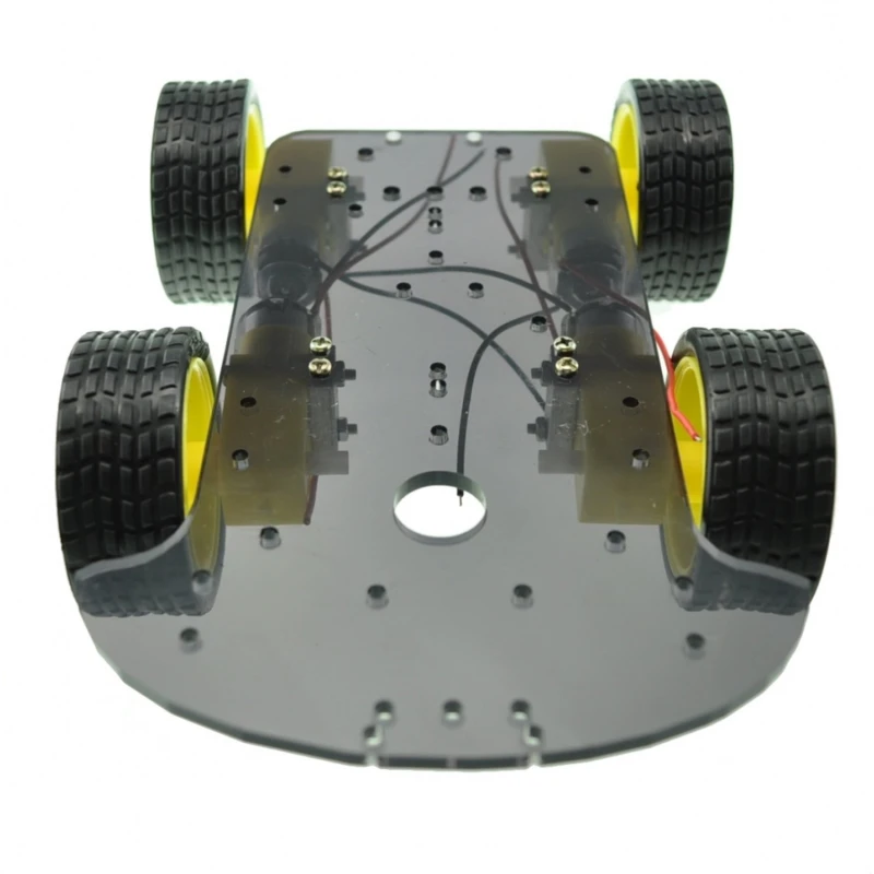 Het wordt aanbevolen het chassis te monteren volgens de meegeleverde handleiding: eerst de motoren in de metalen steunen plaatsen, ze aan de acrylbasis bevestigen, de wielen installeren en tot slot de bekabeling parallel of apart naar de controller aanleggen. Het is aan te raden de draden aan de motoraansluitingen te solderen voor betere geleiding en de kabels vast te zetten om trekken te voorkomen.