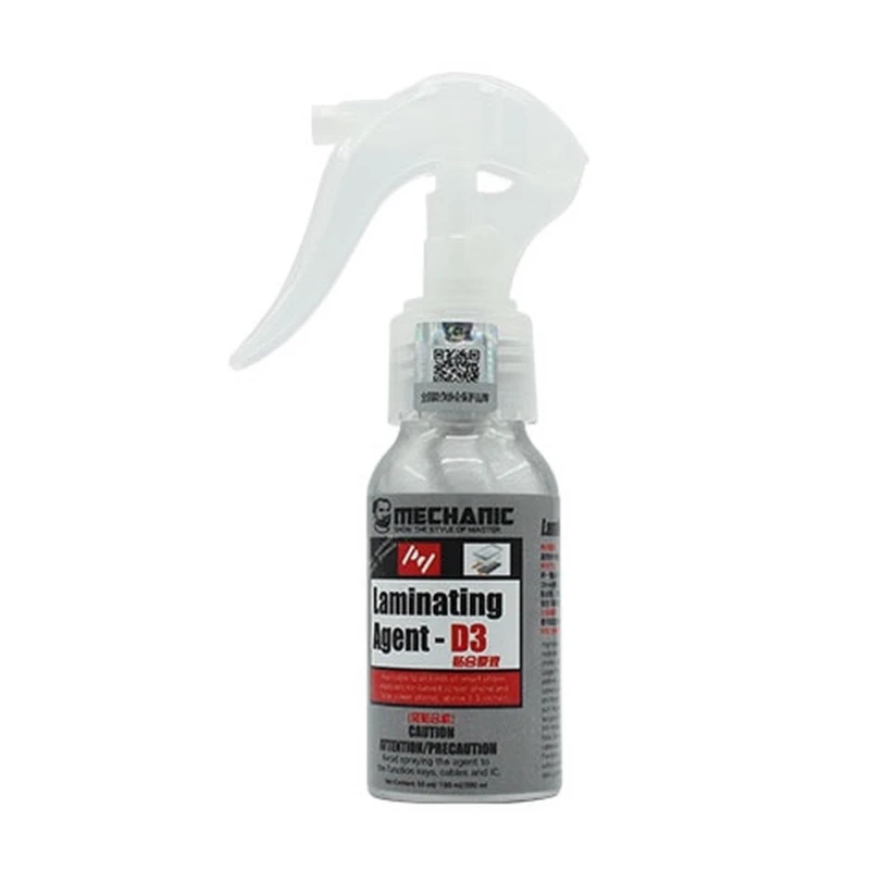 Mechanic D3 laminating agent is een product ontworpen voor onderhoudstechnici die de uitdaging hebben om luchtbellen te voorkomen bij het vervangen van het glas van LCD-schermen. Tijdens het vervangen van gebroken glas kunnen luchtbellen een veelvoorkomend probleem zijn dat het lastig maakt om een perfecte afwerking te krijgen.